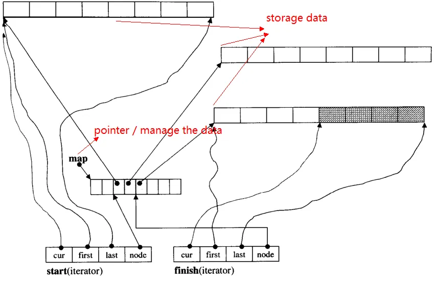 - Random access iterator: same as bidirectional iterator,